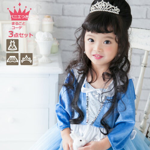 <まるごとコーデ3点セット 眠れる森の美女長袖ブルードレス プリンセスドレスお洒落セット>【HLS_DU】【入門セット ビギナー向け ギフト プレゼント コスプレ ドレス プリンセス フリル 服 レース お姫様 サテン ロング 女の子 オーロラドレス 福袋】