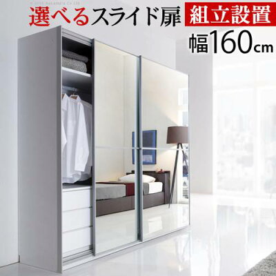 クローゼット 収納 扉 ハンガーラック ワードローブ おしゃれ 安い クローゼットハンガー ロッカー タンス ミラー 鏡付き 木製 衣類 洋服 整理タンス 洋服掛け 吊り下げ収納 スライドドア 幅160