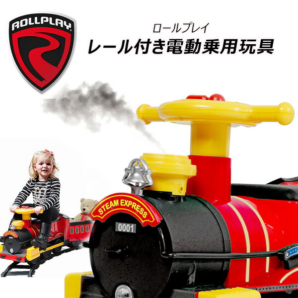 商品詳細 ロールプレイ スチームトレイン ライドオン トイ Rollplay Steam Train 6 Volt Children's Battery Ride-On Toy きかんしゃの気分が味わえる!ロールプレイ製 レール付き電動乗用玩具 組み立て式レールも付いていて、本物みたいに線路を走れちゃう!! ヘッドライトが点灯したり、蒸気が出たりとかなり本格的♪
