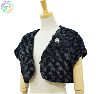 フェイクファー ボレロ ブラック 9号 羽織 結婚式 ボレロ お呼ばれ フォーマル パーティー 二次会 フォーマル 襟付き もこもこあったかボレロ ブローチ コサージュ