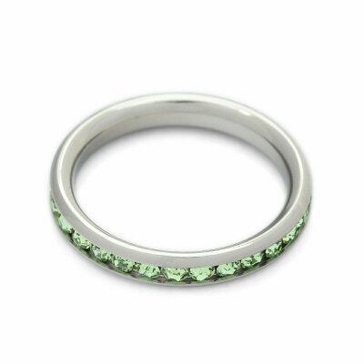 指輪 サージカルステンレス 一周ぐるり水晶のフルエタニティリング レール留め ライトグリーン|医療用ステンレス アクセサリー レディース メンズ