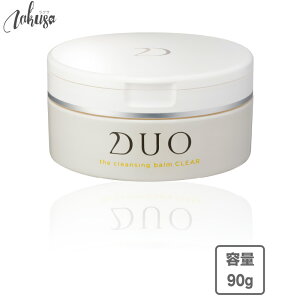 6つの無添加! (6つの無添加:旧表示指定成分/鉱物油/石油系合成界面活性剤/アルコール/合成香料/合成着色料) デュオ ザ クレンジング バーム 90g商品ページへ デュオ ザ クレンジング バーム 90g 3個セット商品ページへ デュオ ザ クレンジング バーム クリア 90g 3個セット商品ページへ 商品スペック 商品名 デュオ DUO(デュオ) ザ クレンジング バーム クリア 90g 内容量 90g 区分 クレンジングクリーム 使用方法 1.手肌が乾いた状態で、適量(専用スプーンにサクランボ大)を手に取り、顔の中心から外、下から上へ全体になじませます。
