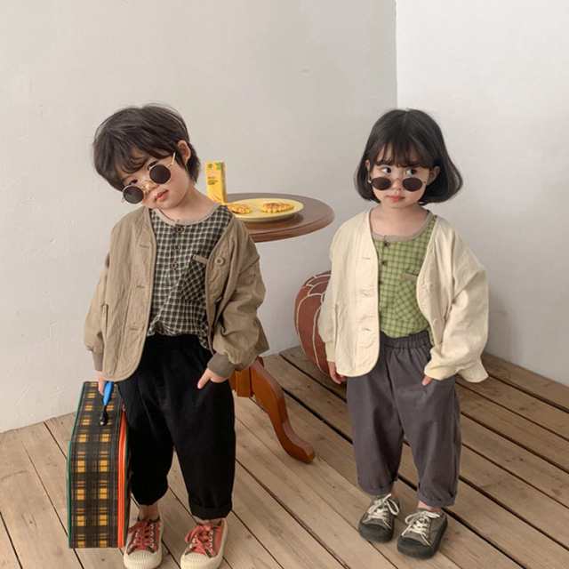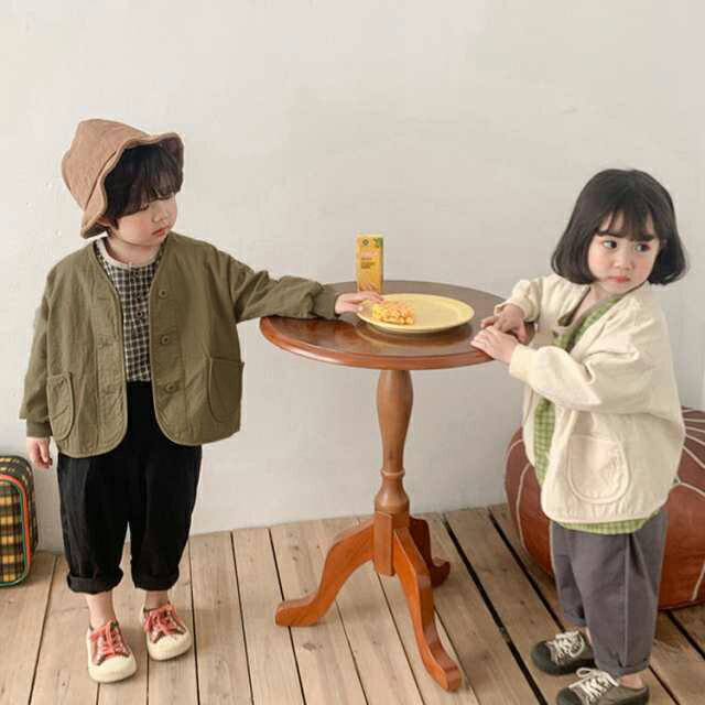 送料無料 コート キッズ 女の子 ジャケット 男の子 アウター 子供服 トップス 羽織り 長袖 カーディガン ユニセックス Vネック ポケット付け ゆったり シンプル ベージュ オリーブ 無地 通園 通学 春秋 韓国