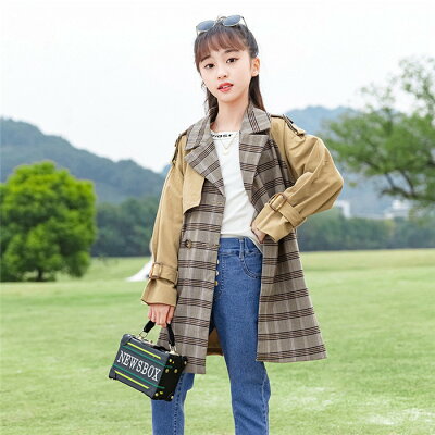 トレンチコート 子供服 子供コート 女の子 春秋 格子スプリングコート キッズコート キッズトレンチコート ボリュームトレンチコート ロング丈 長袖 子ども服 男の子 カジュアル 春服 秋服 チョック柄柄 シンプル こどもの日
