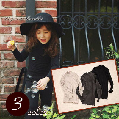 ■AMBER サイズ 韓国サイズ ハイネック 着丈 身幅 100cm 5号 3.5cm 35cm 21cm 110cm 7号 3.5cm 38cm 23cm 120cm 9号 3.5cm 42cm 24cm 130cm 11号 4cm 45cm 25cm 140cm 13号 4cm 48cm 27cm ■素材・仕様 素材:綿95 ポリウレタン5 ◆襟元のシャーリングハイネックが上品であわせやすいトップス♪