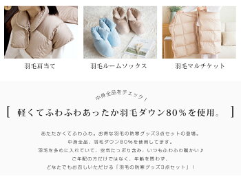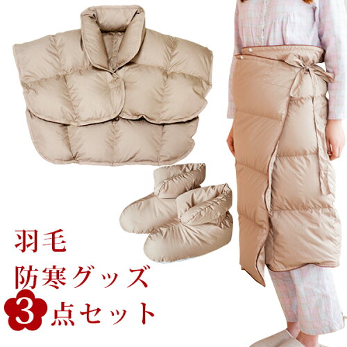 羽毛防寒グッズ3点セット【肩当て ルームシューズ ひざ掛け】色お任せ ルームシューズ ダウン 羽毛 肩当て 羽毛 ひざ掛け ダウン スカート 冷え性対策 防寒対策 冷房対策 祖父 祖母 おじいちゃん おばあちゃん プレゼント 敬老の日 ギフト