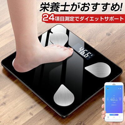 【敬老の日 point10倍】【2部門連続楽天1位】体組成計 体重計 24項目測定 人数無制限 高精度 BIA技術 USB充電 ベビーモード 体脂肪計 スマホ連動 専用APP 内臓脂肪/基礎代謝/BMI 体重体組成計 ボディスケール 多項指標 ヘルスメーター 強化ガラス Bluetooth対応
