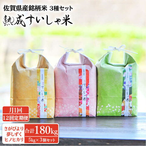 【ふるさと納税】全12回 定期便 佐賀県産 3銘柄米15kg (さがびより 夢しずく ヒノヒカリ ) 一粒<熟成すいしゃ米> NAO024 (国産佐賀県こめ 米 水車)