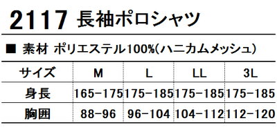寿ニット 長袖ポロシャツ2117の商品情報 作業服の商品詳細 品 番 寿ニット 2117 シーズン ---素 材 ポリエステル100% ハニカムメッシュ カラー シロ クロ コン チャコール 吸汗速乾 デオドラントテープ ポケット付き 機能詳細一覧はこちら 作業服の上下セットを選ぶ際は同シリーズからお選び下さい。