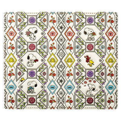 スヌーピーの吉祥花づくし 浅草文庫 高級牛革製ほのぼのスマホケース 播州姫路特産の白革に、色鮮やかな友禅染 日本の伝統が息づく革工芸「浅草文庫」に世界の人気者スヌーピーが登場 10もの色を1色ごと重ね、梅に桜、七宝など古よりの吉祥文様が スヌーピーの愛らしい姿とともに表情豊かに描かれました。
