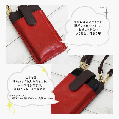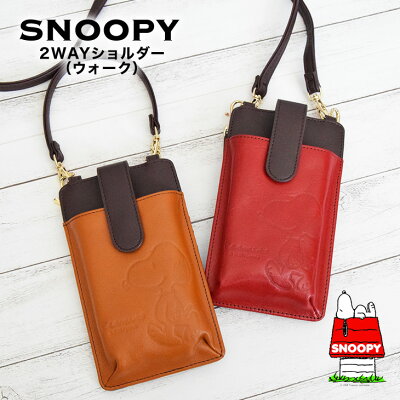 スヌーピー 本革 スマホケース 財布機能付き 2WAY ショルダーバッグ SNOOPY ウォーク キャメル レッド スヌーピー グッズ 大人向け 財布 ミニ財布 2WAYショルダー コンパクト財布 革 皮 牛革 peanuts プレゼント ギフト クリスマス 誕生日 【sn0102】