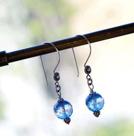 光線の角度によって変化する蒼いフラッシュ・・・ 幻想的な光を放つコスモオーラが耳元で揺らめくピアスです。