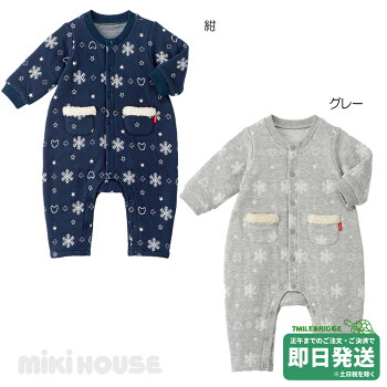 セール30%OFF!ミキハウス ニットキルトジャカード 雪柄カバーオール(70cm・80cm)ミキハウス正規販売店●メール便OK