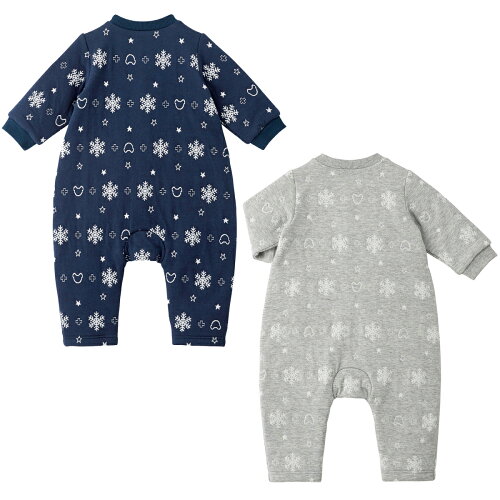 商品について 雪や星の総柄模様が可愛いニットキルトジャカードのカバーオールです。